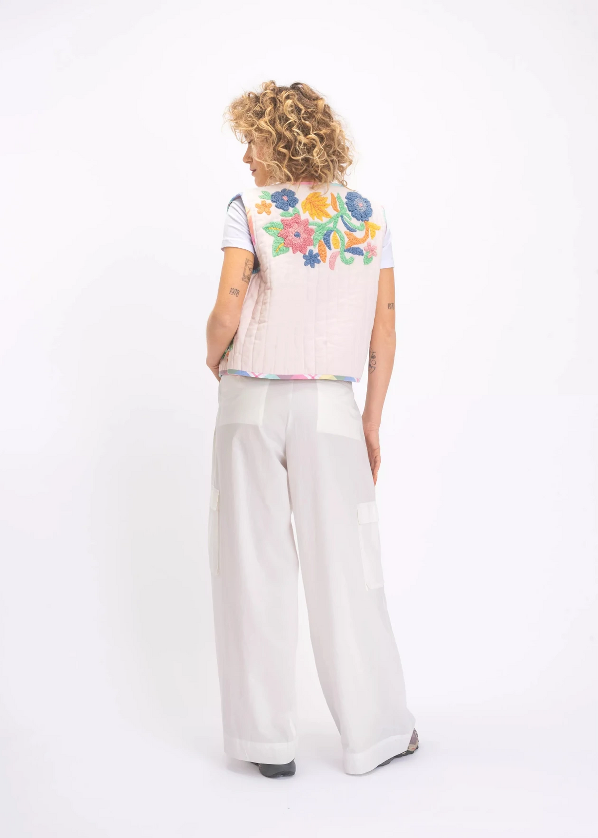 Le Boléro rose brodé BRAMA sublime vos tenues avec son matelassé délicat et ses broderies florales multicolores en fils de coton.